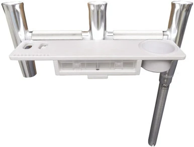 Taco Sport Fishing introduces a strong and durable high polished aluminum 3-rod holder cluster designed to maximize rod placement and usage on your boat. Great for kite fishing or as 3-rod holders in one. Fits all standard gunnel mount rod holders. Along with maximizing space, a tool tray has been added to conveniently hold fishing tacklegear and a cup holder for beverages.